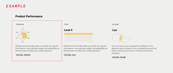 We’re stoked to announce that we have developed a new product performance guide! We’ve dropped our shoes into terrain, flex, and volume ratings that are designed to help you find the right MTB shoe for your riding style and preferences as well as provide more detail around the fit.